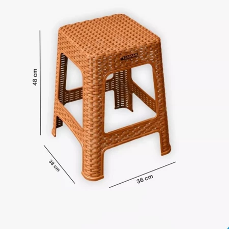 Motif anyaman rotan. Design elegant dan berbahan plastik tebal, kuat, tahan lama dan tidak berjamur. Sehingga dapat menampung beban 100 kg ketika diduduki. Warna awet dan tidak luntur. Dapat digunakan untuk kursi warung makan, kursi santai dirumah dan sebagainya.